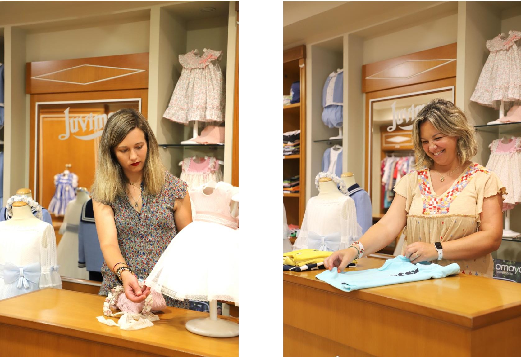 Además. Juvima fue uno de los pioneros en la venta de ropa de ceremonia, llevan más de 50 años vendiendo comunión y a Bibiana le da mucha satisfacción ver la ilusión y el esmero con que las madres y los padres visten a los niños para ese día. Ella pone todo el cariño en cada venta como si fuera la primera, y le encanta cuando madres y padres le cuentan que se vistieron en Juvima en los años 90 y ahora vienen a vestir a sus hijos.